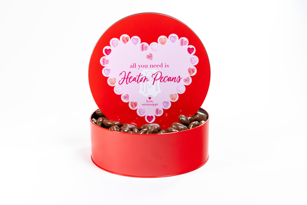 The milk chocolate covered pecans are packaged in a gift-able tin and are perfect for any holiday! For over 40 years, Heaton Pecans' family-run business has been preparing fresh pecans. We use only the highest-quality, new crop pecans and unique cooking methods which separate them from the rest. We pride ourselves that each tin of pecans is hand-prepared by individuals whose sole purpose is to deliver you the highest quality gift available.