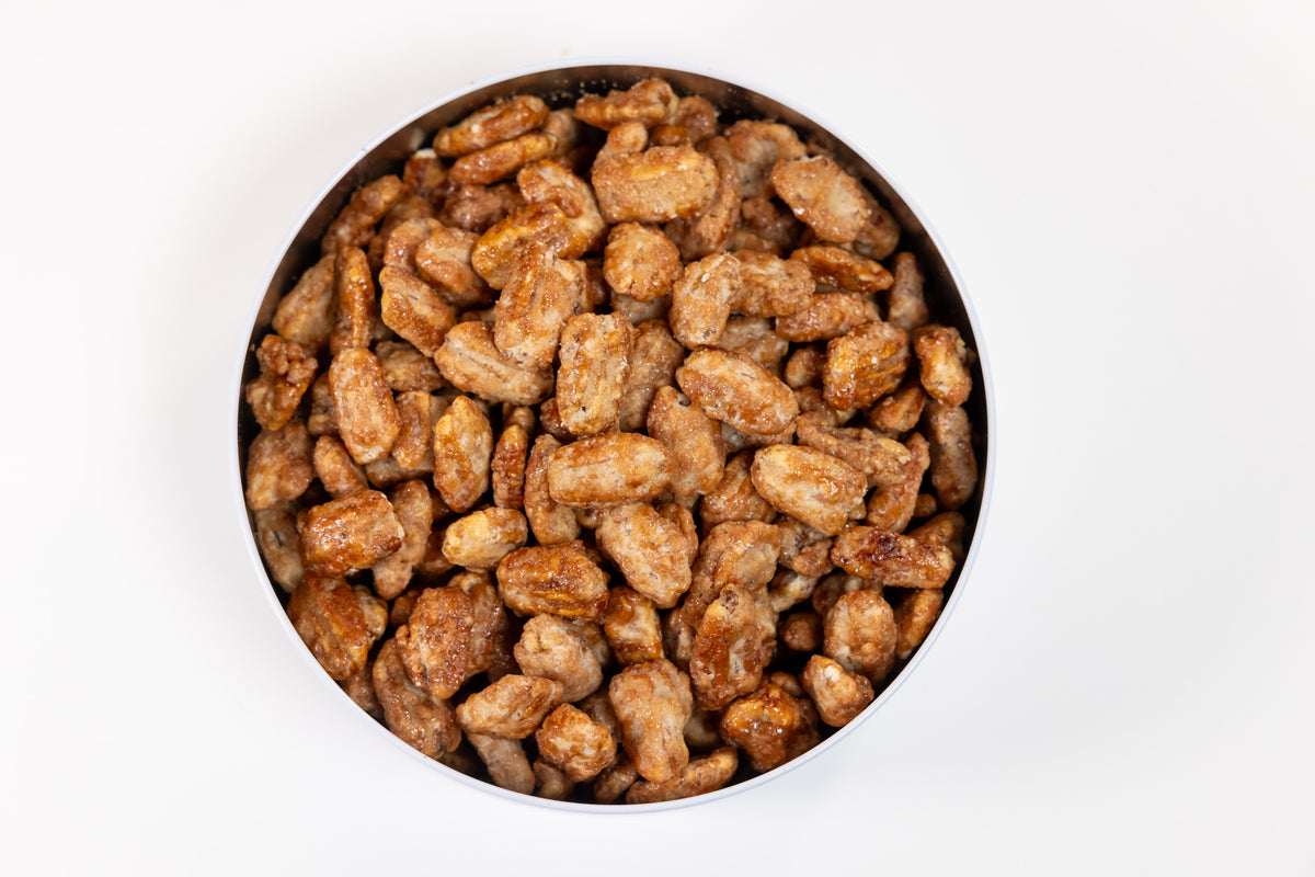 Packaged in a beautifully designed Tin, our praline-coated pecans are not only delicious but also make a thoughtful and elegant gift.