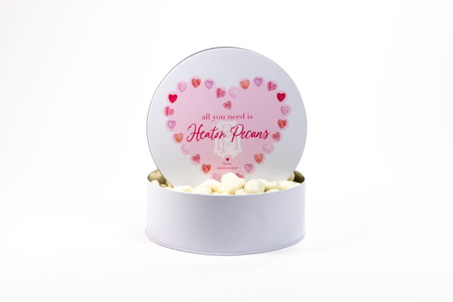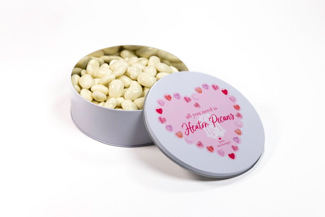 The white chocolate covered pecans are packaged in a gift-able tin and are perfect for any holiday! For over 40 years, Heaton Pecans' family-run business has been preparing fresh pecans. We use only the highest-quality, new crop pecans and unique cooking methods which separate them from the rest. We pride ourselves that each tin of pecans is hand-prepared by individuals whose sole purpose is to deliver you the highest quality gift available.
